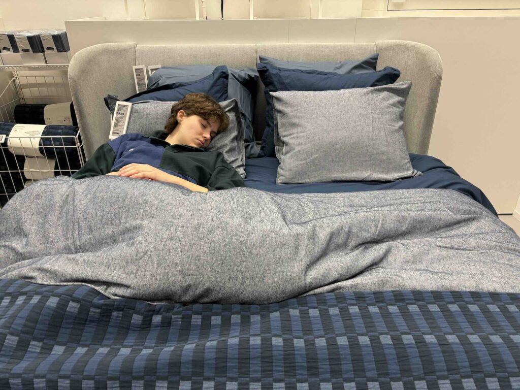 The intervention followed a score, unfolding gradually through the store’s corridors and display rooms until its final gesture: all 22 students and their tutor lay down in the beds of the showroom and fell asleep. An act of collective stillness inside a space designed for perpetual consumption.